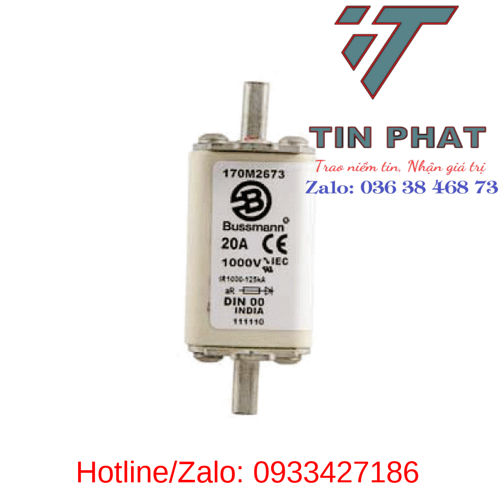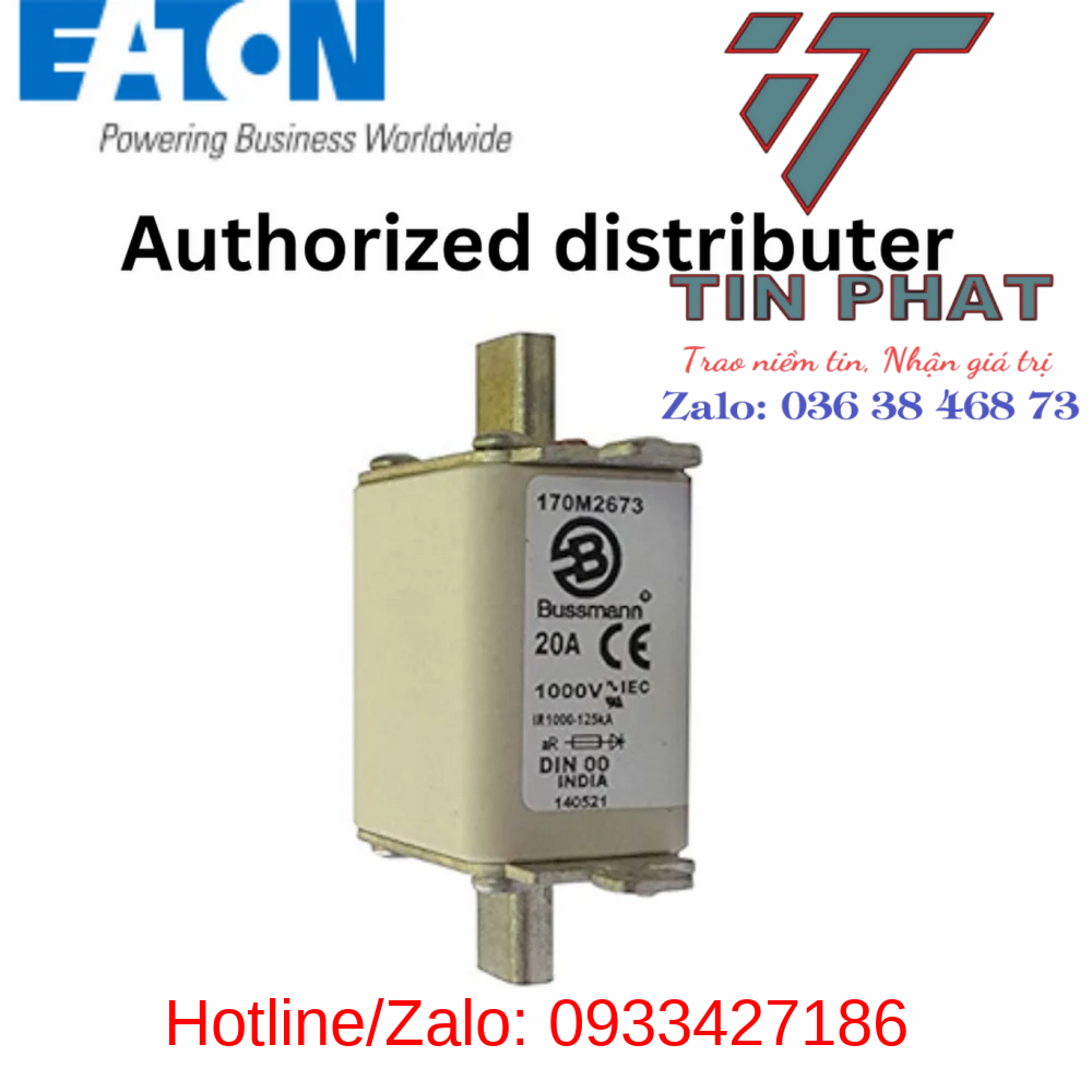Cầu chì cắt nhanh EATON-BUSSMANN dòng định mức 35A 170M2676 điện áp 1000 VAC kích thước NH00 là loại cầu chì bán dẫn cắt nhanh.